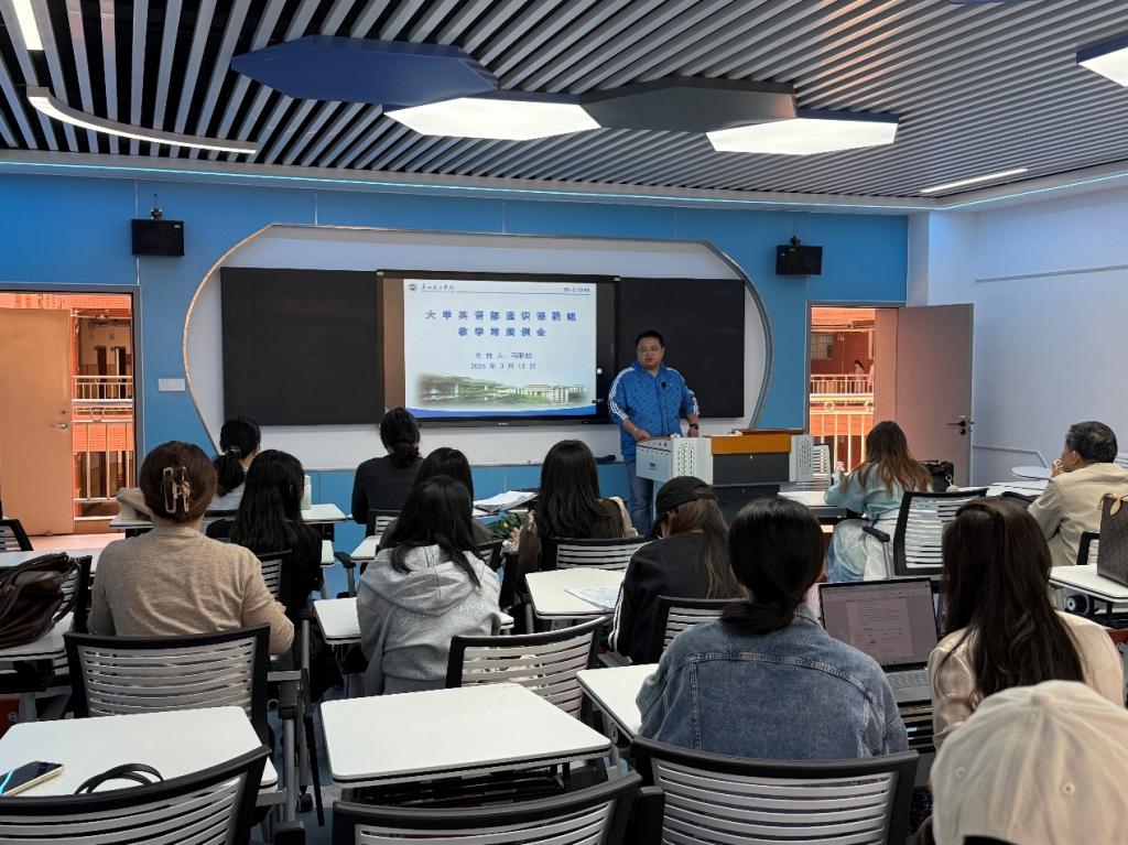 2026年3月12日,外国语学院大学英语部通识课程组在白云校区召开春季学期3月份教学工作例会。会议由大学英语部主任助理马昕劼老师主持,外国语学院副院长冯军霞、督导刘惠琴教授和通识课程组全体教师参加了会议。
